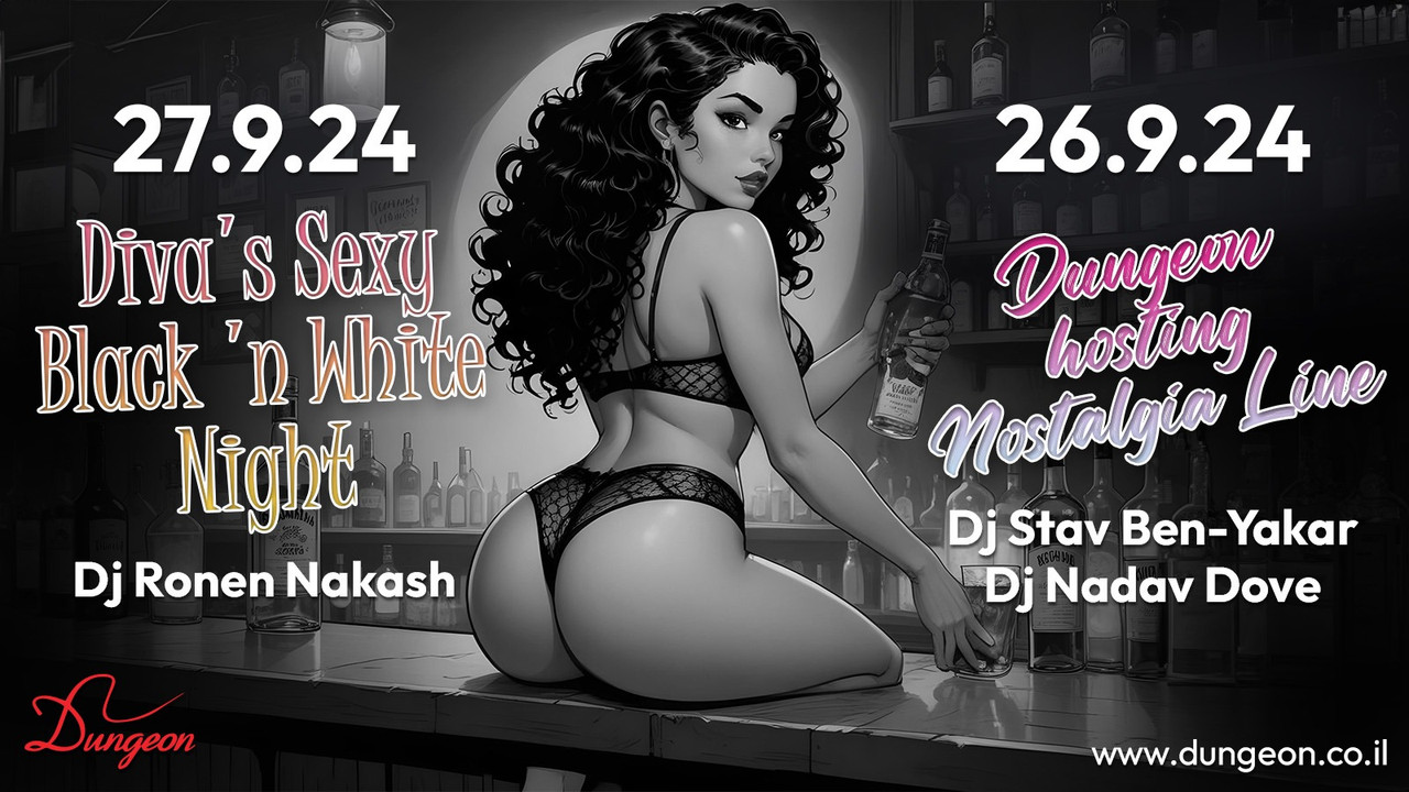 חמישי 26.9 פתיחה בשעה 23:30 Dungeon hosting Nostalgia Line Fetish Party Dj Stav Ben-Yakar Dj Nadav Dove שמחים לחזור ולארח את ליין הנוסטלגיה המצליח 80-90-00 למסיבה משותפת די.ג'יי סתיו בן-יקר יפתח הפעם עם מיטב הלהיטים המוכרים והאהובים של שנות התשעים, הרזידנט שלנו נדב יעלה אחריו עמדת פירסינג בכלוב הקטן על עמוד הריקודים - בתשי, אלופת ישראל בריקוד על עמוד טופז המהפנטת על הבמה המרכזית - רועי בעל הנס, מיכל, ספיר ויסמין במופעי פטיש מגוונים לאורך הלילה המופע המרכזי - לירון ותולי לרכישת כרטיסים במכירה מוקדמת עד חמישי בשעה 22:00 (כרטיס זוגי באיזון מגדרי בלבד, המחיר בקופה יקר יותר): https://dungeon.co.il/product/dungeon-hosting-nostalgia-line-fetish-party-26-9/ שישי 27.9 פתיחה בחצות Diva's Sexy Black & White Night Dj Ronen Nakash מסיבה אחרונה לשנה העברית הנוכחית, אז בואו להרים איתנו לחיים😈 בין הקצוות של שחור ולבן אתם מוזמנים לפזר לנו צבעים הופעות זדוניות לאורך הלילה על הבמה, עמוד הריקודים, המנוף והחישוק המופע המרכזי - ג'דיס vs רועי בעל הנס בהכי שחור ולבן שאפשר אל די.ג'יי נקש תצטרף בנוהל להקת מרקדון לרכישת כרטיסים במכירה מוקדמת עד שישי בשעה 22:00 (כרטיס זוגי באיזון מגדרי בלבד, המחיר בקופה יקר יותר): https://dungeon.co.il/product/divas-sexy-black-white-night-27-9/ חנות הקונספט המטריפה שלנו פתוחה! The Dungeon Concept Shop הכניסה למסיבות מגיל 18 ומעלה ובדרס קוד בלבד: כל מה שקינקי ופטישיסטי, מינימום לבוש שחור מלא ובלי ג’ינס כחול. יש להגיע עם תעודת זהות/רישיון נהיגה (לא צילום בטלפון). יש להישמע להוראות המאבטחים ואנשי הצוות בכניסה ובמקום עצמו. מתחם המבוך החדש, המוגדל והמשודרג המפורסם בכל העיר. הכניסה למתחם המבוך לזוגות בלבד. הצילום בכל רחבי המועדון אסור בהחלט! הדאנג’ן – הבית לחובבי הפטיש קינק והסאדו מאזו בישראל מאז 2002, אז תנסו את זה בבית. מוזמנים לעקוב אחרינו גם באינסטגרם ובטלגרם https://www.instagram.com/dungeon_tlv --telegram-- בשביל מיינסטרים יש מקומות אחרים הארבעה 10 | תל אביב יש חניון שעומד לרשותכם, חניון גבעון – במחיר מסובסד של 15 ש”ח לכל הלילה. מחתימים את הכרטיס בקופת הדאנג’ן