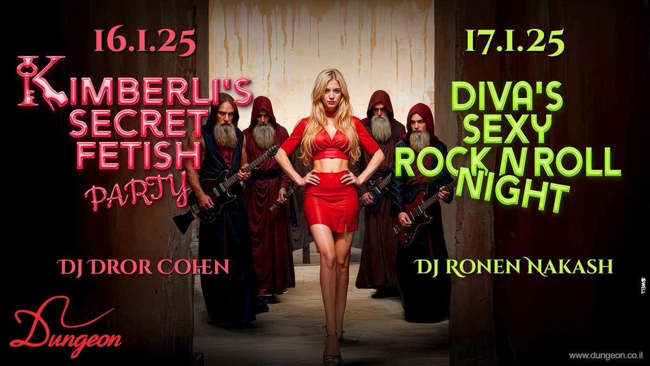 חמישי 16.1 פתיחה בשעה 23:30 Kimberli's Secret Fetish Party Dj Dror Cohen פותחים את הסופ"ש בסערה עם הליין החודשי שלנו - הסוד של קימברלי מתחילים בערב באירוע בוטיק סגור שהכרטיסים אליו כבר אזלו מזמן והחל מהשעה 23:30 ממשיכים למסיבת פטיש שפתוחה לקהל הרחב, עם דגש על פמדום ושליטת המין הנשי צוות הפרפורמרים שלנו על הבמה, עמוד הריקודים, המנוף והחישוק לאורך הלילה כולו המופע המרכזי - FemDom Rules: קימברלי גראנד, המלכה הבלתי מעורערת של הדאנג'ן ומנהלת הליין, בסשן פרוע ורב משתתפים לרכישת כרטיסים במכירה מוקדמת עד חמישי בשעה 22:00 (כרטיס זוגי באיזון מגדרי בלבד, המחיר בקופה יקר יותר): https://dungeon.co.il/product/kimberlis-secret-fetish-party-16-1/ שישי 17.1 פתיחה בחצות Diva's Sexy Rock N Roll Night Dj Ronen Nakash השבוע הקינקיליין סלון של דיווה במוד רוק אנד רול⚡ חוגגים יום הולדת שמח ל-Dom El חבר הצוות שלנו🎊 הפעם בדרס קוד ניתן ורצוי להגיע בלבוש כסאחיסטי, בועט, רוקיסטי על הבמה👑הזוג המלכותי פולינה & דוש בהופעה לוהטת עם הגיטרה טופז המהפנטת על עמוד הריקודים המופע המרכזי - לירון vs אנה, שמגיעה אלינו לביקור קצר מחו"ל לחלל את הבמה אל די.ג'יי נקש, שהפעם ייתן בראש גם עם כמה להיטי רוק מובחרים, תצטרף בנוהל להקת מרקדון לרכישת כרטיסים במכירה מוקדמת עד שישי בשעה 22:00 (כרטיס זוגי באיזון מגדרי בלבד, המחיר בקופה יקר יותר): https://dungeon.co.il/product/divas-sexy-rock-n-roll-night-17-1/ חנות הקונספט המטריפה שלנו פתוחה! The Dungeon Concept Shop הכניסה למסיבות מגיל 18 ומעלה ובדרס קוד בלבד: כל מה שקינקי ופטישיסטי, מינימום לבוש שחור מלא ובלי ג’ינס כחול. יש להגיע עם תעודת זהות/רישיון נהיגה (לא צילום בטלפון). יש להישמע להוראות המאבטחים ואנשי הצוות בכניסה ובמקום עצמו. מתחם המבוך החדש, המוגדל והמשודרג המפורסם בכל העיר. הכניסה למתחם המבוך לזוגות בלבד. הצילום בכל רחבי המועדון אסור בהחלט! הדאנג’ן – הבית לחובבי הפטיש קינק והסאדו מאזו בישראל מאז 2002, אז תנסו את זה בבית. בשביל מיינסטרים יש מקומות אחרים הארבעה 10 | תל אביב יש חניון שעומד לרשותכם, חניון גבעון – במחיר מסובסד של 15 ש”ח לכל הלילה. מחתימים את הכרטיס בקופת הדאנג’ן