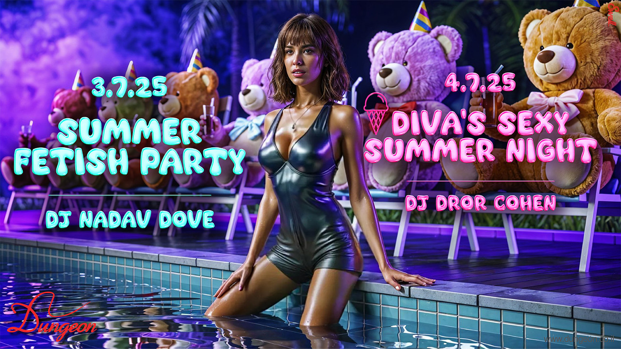 חמישי 3.7 פתיחה בשעה 23:30 Summer Fetish Party Dj Nadav Dove הפתיחה הרשמית של הקיץ ושל החופש הגדול תפאורה קיצית מרעננת שלוקים צוננים ומתוקים רותם אקרובטית העל המופע המרכזי על הבמה - תכינו את בגדי הים והמטקות כי לירון, תולי וצ'ין צ'ין באים לעשות לכם פתיחת קיץ לוהט 🔥 צוות הפרפורמרים שלנו על הבמה, עמוד הריקודים, המנוף והחישוק לאורך הלילה כולו לרכישת כרטיסים במכירה מוקדמת עד חמישי בשעה 22:00 (כרטיס זוגי באיזון מגדרי בלבד, המחיר בקופה יקר יותר): https://dungeon.co.il/product/summer-fetish-party-3-7-2/ שישי 4.7 פתיחה בחצות Diva's Sexy Summer Night Dj Dror Cohen מסיבת פתיחת הקיץ 🍹בליין של דיווה תפאורה מיוחדת, קרחונים ופירות של כיף ליידיס בלבד מוזמנות הפעם להגיע גם בבגדי ים 1. שלושת הראשונות שתגענה בבגד ים תיכנסנה ללא תשלום 2. משקיעות יוכלו לזכות בשוברים לקעקוע מתנת Black ink tattoo https://www.instagram.com/lihi_menzone_tattoo 3. צ'ייסרים למגזימות בלוק 🥳 חוגגים יום הולדת שמח לרוני על הבמה המרכזית: 🌡️סשן שיבארי קיצי 🌡️ יולי אדום בסשן רטוב 🌡️ בתשי אלופת ישראל בריקוד על עמוד תשרוף את עמוד הריקודים 🎧אל די.ג'יי דרור כהן תצטרף בנוהל להקת מרקדון https://dungeon.co.il/product/divas-sexy-summer-night-4-7/ חנות הקונספט המטריפה שלנו פתוחה! The Dungeon Concept Shop הכניסה למסיבות מגיל 18 ומעלה ובדרס קוד בלבד: כל מה שקינקי ופטישיסטי, מינימום לבוש שחור מלא ובלי ג’ינס כחול. יש להגיע עם תעודת זהות/רישיון נהיגה (לא צילום בטלפון). יש להישמע להוראות המאבטחים ואנשי הצוות בכניסה ובמקום עצמו. מתחם המבוך המוגדל והמשודרג המפורסם בכל העיר. הכניסה למתחם המבוך לזוגות בלבד. הצילום בכל רחבי המועדון אסור בהחלט! הדאנג’ן – הבית לחובבי הפטיש קינק והסאדו מאזו בישראל מאז 2002, אז תנסו את זה בבית. בשביל מיינסטרים יש מקומות אחרים הארבעה 10 | תל אביב יש חניון שעומד לרשותכם, חניון גבעון – במחיר מסובסד של 15 ש”ח לכל הלילה. מחתימים את הכרטיס בקופת הדאנג’ן