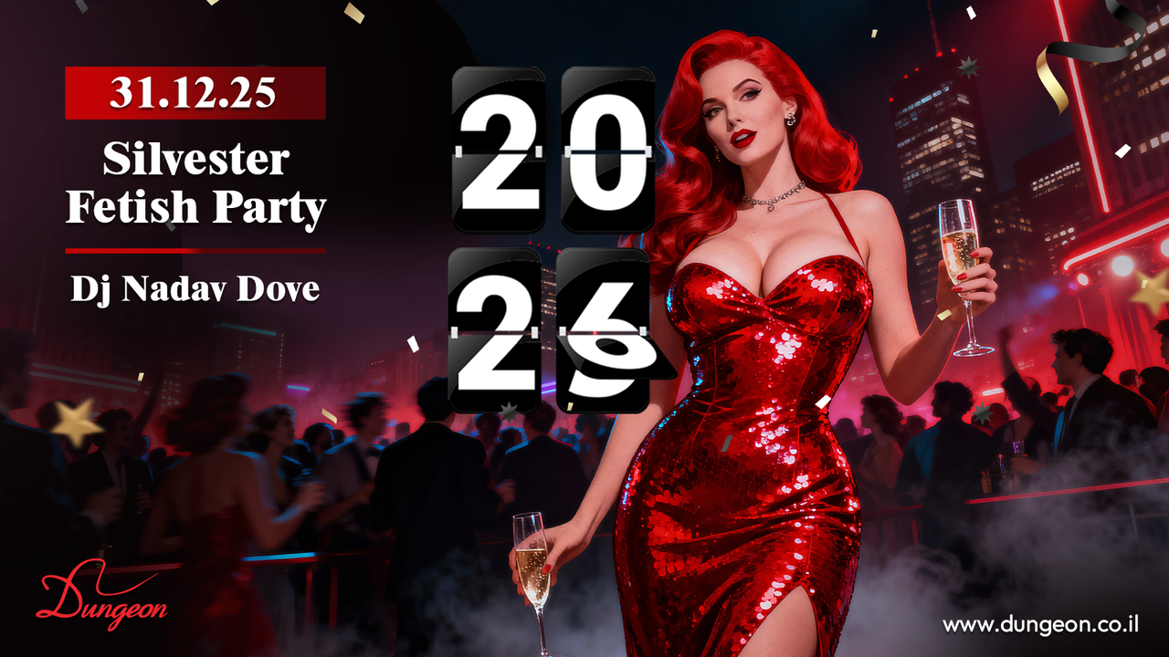רביעי 31.12 פתיחה בשעה 23:00 Silvester Fetish Party Dj Nadav Dove 2026 תיפתח בחגיגת הפטיש הגדולה והשמחה של השנה במסיבה שכבר הפכה למסורת מתחילים את השנה החדשה במקום שאתם בוחרים בו כל השנה! מי שיקדים רק ירוויח כי בין השעות 23:00 לחצות Happy Hour מטורף על הבר!!! כל האלכוהול בבר בחצי מחיר!!! שימו לב – כל מי שיקנה כרטיס למסיבה (במכירה המוקדמת באתר או בקופה) יוכל להיכנס למסיבה שתיערך יום אחרי בחמישי 1.1.26 ב-50% הנחה ממחיר הכניסה המלא (בהצגת הכרטיס או סרט הקופה של מסיבת הסילבסטר). 10… 9… 8… 7… 6… 5… 4… 3… 2… 1… מיד לאחר הספירה לאחור, בחצות בדיוק, כמיטב המסורת אצלנו תחרות הנשיקה הצרפתית הלוהטת המתנשקים הסקסיים יזכו בפרסים שווים שמפניה תוססת להרמת כוסית תפאורה מיוחדת וצבעונית הופעות פטיש וריקוד על עמוד על הבמה לאורך הלילה כולו המופע המרכזי על הבמה – לירון וצ'ין צ'ין בהופעה מנצנצת ומהפנטת להקת מרקדון מגיעה לעשות לנו שמח על הבמה חנות הקונספט המטריפה שלנו פתוחה! The Dungeon Concept Shop על העמדה – Dj Nadav Dove ירקיד אתכם כל הדרך לשנה החדשה ויגרום לכם לקפץ ברחבה עד אור הבוקר מחיר כרטיס זוגי במכירה מוקדמת (עד ערב המסיבה בשעה 21:00) – 180 ש”ח. https://dungeon.co.il/product/silvester-fetish-party-31-12-3 מחיר כרטיס זוגי בקופה בערב המסיבה – 200 ש”ח ועל בסיס מקום פנוי בלבד. הכניסה למסיבות מגיל 18 ומעלה ובדרס קוד בלבד: כל מה שקינקי ופטישיסטי, מינימום לבוש שחור מלא ובלי ג’ינס כחול. יש להגיע עם תעודת זהות/רישיון נהיגה (לא צילום בטלפון). יש להישמע להוראות המאבטחים ואנשי הצוות בכניסה ובמקום עצמו. מתחם המבוך החדש, המוגדל והמשודרג המפורסם בכל העיר. הכניסה למתחם המבוך לזוגות בלבד. הצילום בכל רחבי המועדון אסור בהחלט! הדאנג’ן – הבית לחובבי הפטיש קינק והסאדו מאזו בישראל מאז 2002, אז תנסו את זה בבית. מוזמנים לעקוב אחרינו גם באינסטגרם ובטלגרם https://www.instagram.com/dungeon_tlv --telegram-- בשביל מיינסטרים יש מקומות אחרים הארבעה 10 | תל אביב יש חניון שעומד לרשותכם, חניון גבעון – במחיר מסובסד של 15 ש”ח לכל הלילה. מחתימים את הכרטיס בקופת הדאנג’ן