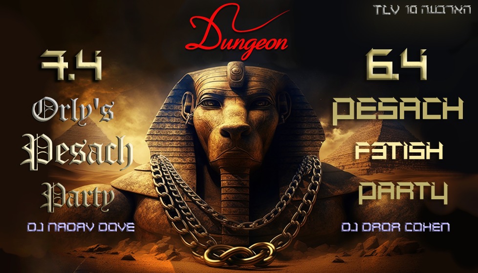 חמישי 6.4 פתיחה בשעה 23:30 Pesach Fetish Party Dj Dror Cohen חוגגים את פסח כמו שרק אנחנו יודעים המקום היחיד בישראל שבו יוצאים מחירות לעבדות 365 ימים בשנה... המועדון ילבש אווירת חג מופע שיבארי מרהיב של דום ראגנר ובייבי באני מופע של סאבמיסיב על מתקן ההרמה החדש שלנו צוות הפרפורמרים שלנו על הבמה, עמוד הריקודים והחישוק לאורך הלילה כולו לרכישת כרטיסים במכירה מוקדמת עד חמישי בשעה 22:00 (כרטיס זוגי באיזון מגדרי בלבד, המחיר בקופה יקר יותר): https://dungeon.co.il/events/pesach-fetish-party-6-4/ שישי 7.4 פתיחה בחצות Orly's Pesach Party Dj Nadav Dove הלילה הזה, הלילה הזה חגיגה אמיתית ופטישיסטית באווירת החג על הבמה משחקים קינקיים והופעות מיוחדות לפסח הופעת שיבארי עוצרת נשימה של האמן זוהר סשן חגיגי של עשרת המכות עם צמד האופניקים לרכישת כרטיסים במכירה מוקדמת עד שישי בשעה 22:00 (כרטיס זוגי באיזון מגדרי בלבד, המחיר בקופה יקר יותר): https://dungeon.co.il/events/orlys-pesach-party-7-4/ הכניסה למסיבות מגיל 18 ומעלה ובדרס קוד בלבד: כל מה שקינקי ופטישיסטי, מינימום לבוש שחור מלא ובלי ג'ינס כחול. יש להגיע עם תעודת זהות/רישיון נהיגה (לא צילום בטלפון). יש להישמע להוראות המאבטחים ואנשי הצוות בכניסה ובמקום עצמו. מתחם המבוך החדש, המוגדל והמשודרג המפורסם בכל העיר. הכניסה למתחם המבוך לזוגות בלבד. הצילום בכל רחבי המועדון אסור בהחלט! הדאנג’ן – הבית לחובבי הפטיש קינק והסאדו מאזו בישראל מאז 2002, אז תנסו את זה בבית. מוזמנים לעקוב אחרינו גם באינסטגרם ובטלגרם https://www.instagram.com/dungeon_tlv --telegram-- החינוך מתחיל בבית הארבעה 10 | תל אביב יש חניון שעומד לרשותכם, חניון גבעון – במחיר מסובסד של 10 ש"ח לכל הלילה. מחתימים את הכרטיס בקופת הדאנג'ן