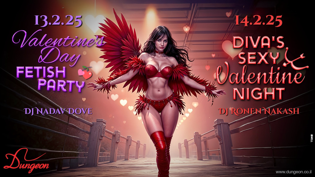 חמישי 13.2 פתיחה בשעה 23:30 Valentine's Day Fetish Party Dj Nadav Dove חוגגים את חג האהבה הבינלאומי תפאורה רומנטית ופינוקים מתוקים בצורת לבבות שוקולד עמדת פירסינג בכלוב הקטן ג'וליאן הרקדן המעלף והזמרת RED מגיעים לספר לכם סיפור על יצורי לילה נשכניים 😈 המופע המרכזי על הבמה - לירון והזאב הלבן מעירים לחיים את האגדה הקסומה של 'כיפה אדומה' במופע שכולו אהבה וכאב ❤️🔥🐺 צוות הפרפורמרים שלנו על הבמה, עמוד הריקודים, המנוף והחישוק לאורך הלילה כולו לרכישת כרטיסים במכירה מוקדמת עד חמישי בשעה 22:00 (כרטיס זוגי באיזון מגדרי בלבד, המחיר בקופה יקר יותר): https://dungeon.co.il/product/valentines-day-fetish-party-13-2/ שישי 14.2 פתיחה בחצות Diva's Sexy Valentine Night Dj Ronen Nakash חגיגות ולנטיינס בקינקיליין סלון, בלילה אדום במיוחד בלילה הזה מותר להגיע בלבוש אדום ואפילו ורוד תפאורה רומנטית ופינוקים מתוקים עמדת קעקועים בכלוב הקטן - אביטל מגיעה לקעקע אתכם, עם מחירים מיוחדים לקעקועים זוגיים בתשי אלופת ישראל בריקוד על עמוד דום ראגנר והקטנה בהופעת שיבארי מלאת לבבות פולינה & ג'וש בריקוד מסוכן ומסחרר המופע המרכזי על הבמה - רועי בעל הנס & Jadis White לרכישת כרטיסים במכירה מוקדמת עד שישי בשעה 22:00 (כרטיס זוגי באיזון מגדרי בלבד, המחיר בקופה יקר יותר): https://dungeon.co.il/product/divas-sexy-valentine-night-14-2/ חנות הקונספט המטריפה שלנו פתוחה! The Dungeon Concept Shop הכניסה למסיבות מגיל 18 ומעלה ובדרס קוד בלבד: כל מה שקינקי ופטישיסטי, מינימום לבוש שחור מלא ובלי ג’ינס כחול. יש להגיע עם תעודת זהות/רישיון נהיגה (לא צילום בטלפון). יש להישמע להוראות המאבטחים ואנשי הצוות בכניסה ובמקום עצמו. מתחם המבוך החדש, המוגדל והמשודרג המפורסם בכל העיר. הכניסה למתחם המבוך לזוגות בלבד. הצילום בכל רחבי המועדון אסור בהחלט! הדאנג’ן – הבית לחובבי הפטיש קינק והסאדו מאזו בישראל מאז 2002, אז תנסו את זה בבית. בשביל מיינסטרים יש מקומות אחרים הארבעה 10 | תל אביב