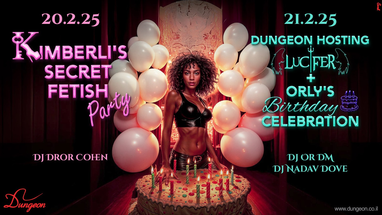 חמישי 20.2 פתיחה בשעה 23:30 Kimberli's Secret Fetish Party Dj Dror Cohen פותחים את הסופ"ש בסערה עם הליין החודשי שלנו - הסוד של קימברלי מתחילים בערב באירוע בוטיק סגור שהכרטיסים אליו כבר אזלו מזמן והחל מהשעה 23:30 ממשיכים למסיבת פטיש שפתוחה לקהל הרחב, עם דגש על פמדום ושליטת המין הנשי צוות הפרפורמרים שלנו על הבמה, עמוד הריקודים, המנוף והחישוק לאורך הלילה כולו המופע המרכזי - FemDom Rules: קימברלי גראנד, המלכה הבלתי מעורערת של הדאנג'ן ומנהלת הליין, בסשן פרוע ורב משתתפים לרכישת כרטיסים במכירה מוקדמת עד חמישי בשעה 22:00 (כרטיס זוגי באיזון מגדרי בלבד, המחיר בקופה יקר יותר): https://dungeon.co.il/product/kimberlis-secret-fetish-party-20-2/ שישי 21.2 פתיחה בשעה 23:30 (באופן חד-פעמי) Dungeon hosting Lucifer | Orly's Birthday Celebration Dj Or DM Dj Nadav Dove אורלי שלנו, מנהלת הליין, חוגגת יום הולדת במסיבה שמחה, צבעונית ומלאה באהבה, בשיתוף עם לוציפר, ליין הפטיש הגותי האלטרנטיבי הצוותים של הדאנג'ן, לוציפר ואורלי משלבים כוחות כדי להביא לכם ערב מלא בהפתעות, הופעות ואטרקציות כיפיות, שלא את כולן אנחנו יכולים לגלות בנוסף, חוגגים יום הולדת גם לשלומי, צלם הליין האהוב שלנו הופעות מיוחדות על הבמה כל הלילה! * הופעת שיבארי של דום ראגנר המיוחד במינו והקטנה האהובה שלו * הצמד הסקסי גיברת אופניק וניר בהופעה מטורפת היישר מהגיהנום * הופעה מרכזית שטנית ביותר ובלתי נשכחת של רובי, נאט, יולי אדום ולאורה * ג'וליאן וטופז ההורסים מגיעים לכבוש את עמוד הריקודים בסערה * להקת מרקדון מגיעה לעשות לכם שמח על העמדה – יפתח רזידנט ומייסד לוציפר Or DM, ואחריו יעלה רזידנט הדאנג'ן נדב לרכישת כרטיסים במכירה מוקדמת עד שישי בשעה 22:00 (כרטיס זוגי באיזון מגדרי בלבד, המחיר בקופה יקר יותר): https://dungeon.co.il/product/dungeon-hosting-lucifer-orlys-birthday-celebration-21-2/ חנות הקונספט המטריפה שלנו פתוחה! The Dungeon Concept Shop הכניסה למסיבות מגיל 18 ומעלה ובדרס קוד בלבד: כל מה שקינקי ופטישיסטי, מינימום לבוש שחור מלא ובלי ג’ינס כחול. יש להגיע עם תעודת זהות/רישיון נהיגה (לא צילום בטלפון). יש להישמע להוראות המאבטחים ואנשי הצוות בכניסה ובמקום עצמו. מתחם המבוך החדש, המוגדל והמשודרג המפורסם בכל העיר. הכניסה למתחם המבוך לזוגות בלבד. הצילום בכל רחבי המועדון אסור בהחלט! הדאנג’ן – הבית לחובבי הפטיש קינק והסאדו מאזו בישראל מאז 2002, אז תנסו את זה בבית. בשביל מיינסטרים יש מקומות אחרים הארבעה 10 | תל אביב יש חניון שעומד לרשותכם, חניון גבעון – במחיר מסובסד של 15 ש”ח לכל הלילה. מחתימים את הכרטיס בקופת הדאנג’ן