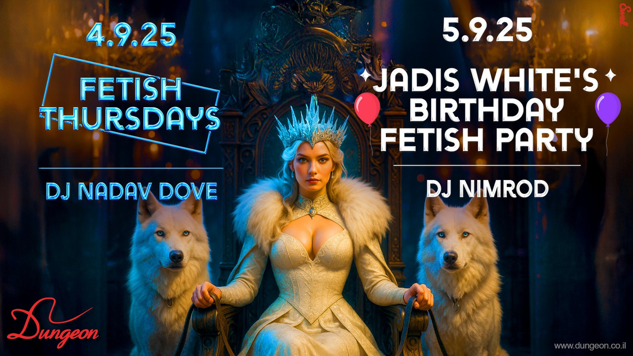 חמישי 4.9 פתיחה בשעה 23:30 Fetish Thursdays Dj Nadav Dove פותחים את הסופ"ש בסערה עם ערב הדגל של המועדון כבר מעל 22 שנים חוגגים יום הולדת שמח לרויטל, הסלקטורית האהובה שלנו <3 הפעם היא תהיה איתנו בפנים, ומלכת הבית קימברלי כבר מצחצחת את השוטים... ג'וליאן ופינק ג'ינג'ר על עמוד הריקודים המופע המרכזי על הבמה - לירון וצ'ין צ'ין במופע שיהפנט אתכם צוות הפרפורמרים שלנו על הבמה, עמוד הריקודים, המנוף והחישוק לאורך הלילה כולו לרכישת כרטיסים במכירה מוקדמת עד חמישי בשעה 22:00 (כרטיס זוגי באיזון מגדרי בלבד, המחיר בקופה יקר יותר): https://dungeon.co.il/product/fetish-thursdays-4-9/ שישי 5.9 פתיחה בחצות Jadis White's Birthday Fetish Party Dj Nimrod חוגגים יום הולדת לשהם, aka Jadis White, הפירסט ליידי של הדאנג'ן <3 נחגוג גם יום הולדת לתומר כהן, האיש והתופים, שלכבוד האירוע יכבד אותנו גם במופע מיוחד בתשי, אלופת ישראל 3 שנים ברציפות, על עמוד הריקודים המופע המרכזי על הבמה - כלת היומולדת ג'דיס וייט ורועי בעל הנס לרכישת כרטיסים במכירה מוקדמת עד שישי בשעה 22:00 (כרטיס זוגי באיזון מגדרי בלבד, המחיר בקופה יקר יותר): https://dungeon.co.il/product/jadis-whites-birthday-fetish-party-5-9/ חנות הקונספט המטריפה שלנו פתוחה! The Dungeon Concept Shop הכניסה למסיבות מגיל 18 ומעלה ובדרס קוד בלבד: כל מה שקינקי ופטישיסטי, מינימום לבוש שחור מלא ובלי ג’ינס כחול. יש להגיע עם תעודת זהות/רישיון נהיגה (לא צילום בטלפון). יש להישמע להוראות המאבטחים ואנשי הצוות בכניסה ובמקום עצמו. מתחם המבוך המוגדל והמשודרג המפורסם בכל העיר. הכניסה למתחם המבוך לזוגות בלבד. הצילום בכל רחבי המועדון אסור בהחלט! הדאנג’ן – הבית לחובבי הפטיש קינק והסאדו מאזו בישראל מאז 2002, אז תנסו את זה בבית. בשביל מיינסטרים יש מקומות אחרים הארבעה 10 | תל אביב יש חניון שעומד לרשותכם, חניון גבעון – במחיר מסובסד של 15 ש”ח לכל הלילה. מחתימים את הכרטיס בקופת הדאנג’ן