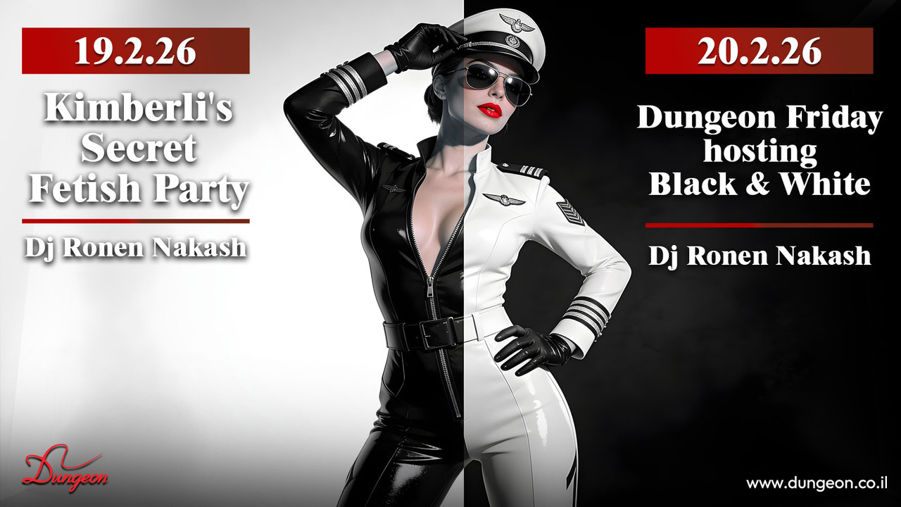 חמישי 19.2 פתיחה בשעה 23:30 Kimberli's Secret Fetish Party Dj Ronen Nakash פותחים את הסופ"ש בסערה עם הליין החודשי שלנו – הסוד של קימברלי מתחילים בערב באירוע בוטיק סגור, והחל מהשעה 23:30 ממשיכים למסיבת פטיש שפתוחה לקהל הרחב, עם דגש על פמדום ושליטת המין הנשי ג'וליאן ההורס על עמוד הריקודים צוות הפרפורמרים שלנו על הבמה, עמוד הריקודים, המנוף והחישוק לאורך הלילה כולו המופעים על הבמה – FemDom Rules: קימברלי גראנד, המלכה הבלתי מעורערת של הדאנג'ן ומנהלת הליין, בסשן פרוע ורב משתתפים Goddess Seilor Kitty והכלבלב שלה לרכישת כרטיסים במכירה מוקדמת עד חמישי בשעה 22:00 (כרטיס זוגי באיזון מגדרי בלבד, המחיר בקופה יקר יותר): https://dungeon.co.il/product/kimberlis-secret-fetish-party-19-2/ שישי 20.2 פתיחה בחצות Dungeon Friday hosting Black & White Dj Ronen Nakash שישי דאנג'ן מארח את Jadis White ו-Liana Black ללילה של הפכים שנמשכים זה לזה פינק ג'ינג'ר וג'וליאן על עמוד הריקודים המופע המרכזי על הבמה - ג'דיס, ליאנה ורועי בעל הנס במשולש של תשוקה וכאב לרכישת כרטיסים במכירה מוקדמת עד שישי בשעה 22:00 (כרטיס זוגי באיזון מגדרי בלבד, המחיר בקופה יקר יותר): https://dungeon.co.il/product/dungeon-friday-hosting-black-white-20-2/ חנות הקונספט המטריפה שלנו פתוחה! The Dungeon Concept Shop הכניסה למסיבות מגיל 18 ומעלה ובדרס קוד בלבד: כל מה שקינקי ופטישיסטי, מינימום לבוש שחור מלא ובלי ג’ינס כחול. יש להגיע עם תעודת זהות/רישיון נהיגה (לא צילום בטלפון). יש להישמע להוראות המאבטחים ואנשי הצוות בכניסה ובמקום עצמו. מתחם המבוך המוגדל והמשודרג המפורסם בכל העיר. הכניסה למתחם המבוך לזוגות בלבד. הצילום בכל רחבי המועדון אסור בהחלט! הדאנג’ן – הבית לחובבי הפטיש קינק והסאדו מאזו בישראל מאז 2002, אז תנסו את זה בבית. מוזמנים לעקוב אחרינו גם באינסטגרם https://www.instagram.com/dungeon_tlv בשביל מיינסטרים יש מקומות אחרים הארבעה 10 | תל אביב יש חניון שעומד לרשותכם, חניון גבעון – במחיר מסובסד של 15 ש”ח לכל הלילה. מחתימים את הכרטיס בקופת הדאנג’ן